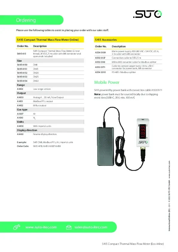 Presisi Tinggi: Dengan teknologi sensor termal canggih, S415 menawarkan pengukuran aliran yang akurat, membantu dalam pengelolaan proses industri dengan ketat.