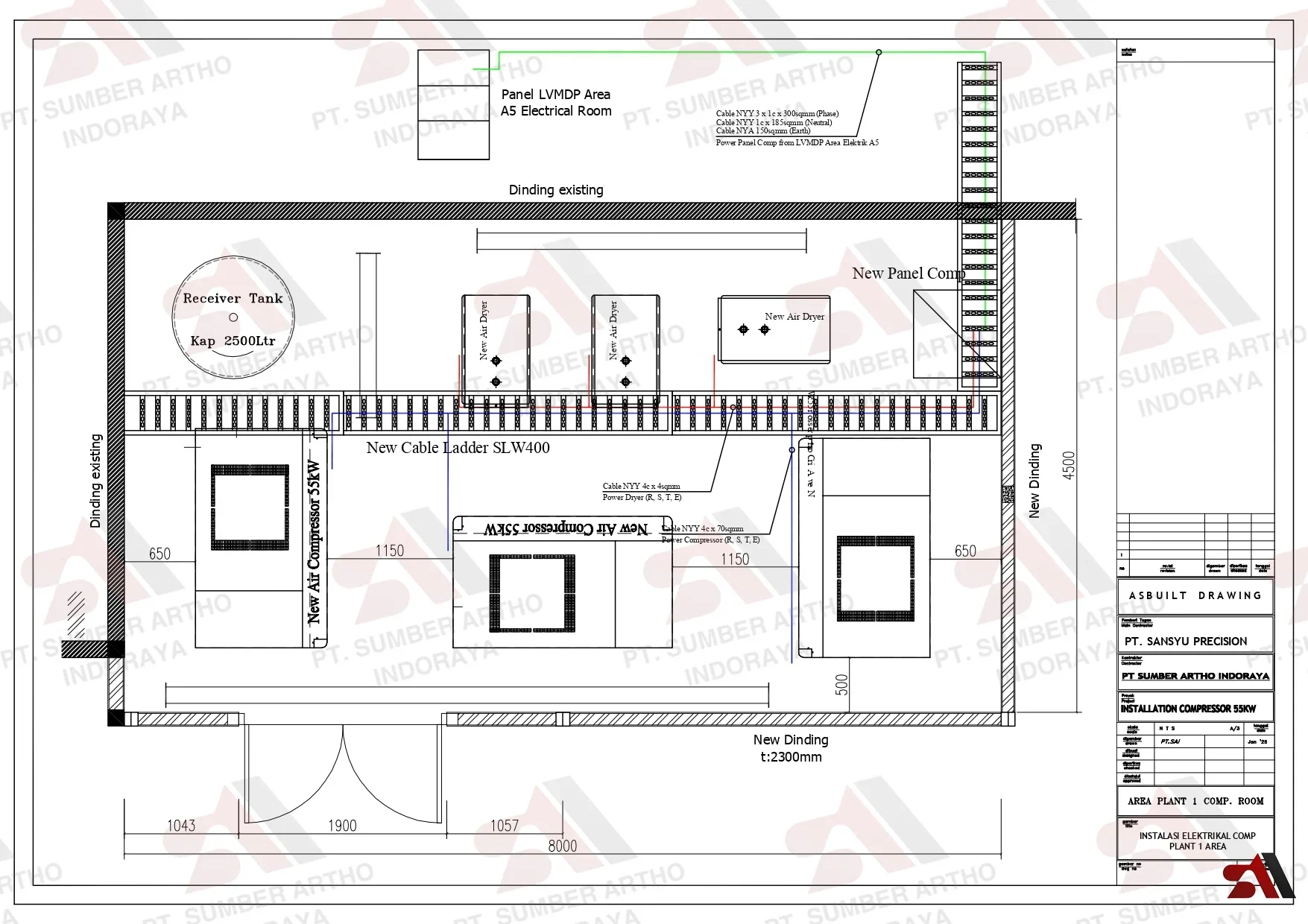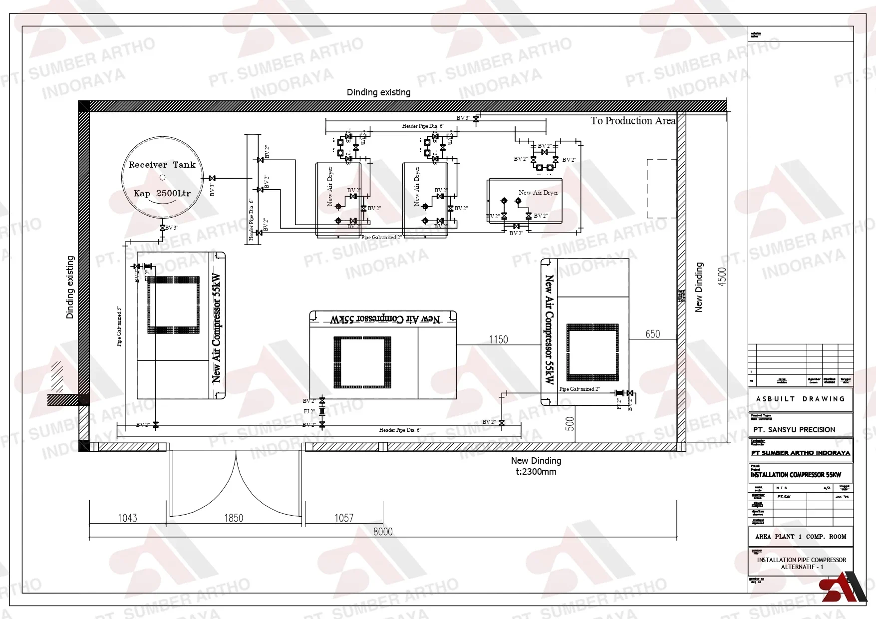 - Pabrik Indsutri: Penyediaan dan pemasangan sistem kompresor lengkap dengan tangki penyimpanan untuk kebutuhan operasional pabrik.