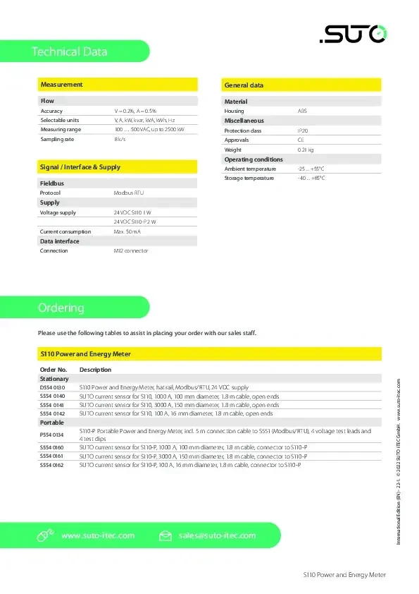 - Power & Energy Meter S110 dirancang untuk memberikan pengukuran yang sangat akurat, dengan tingkat kesalahan yang sangat rendah.
